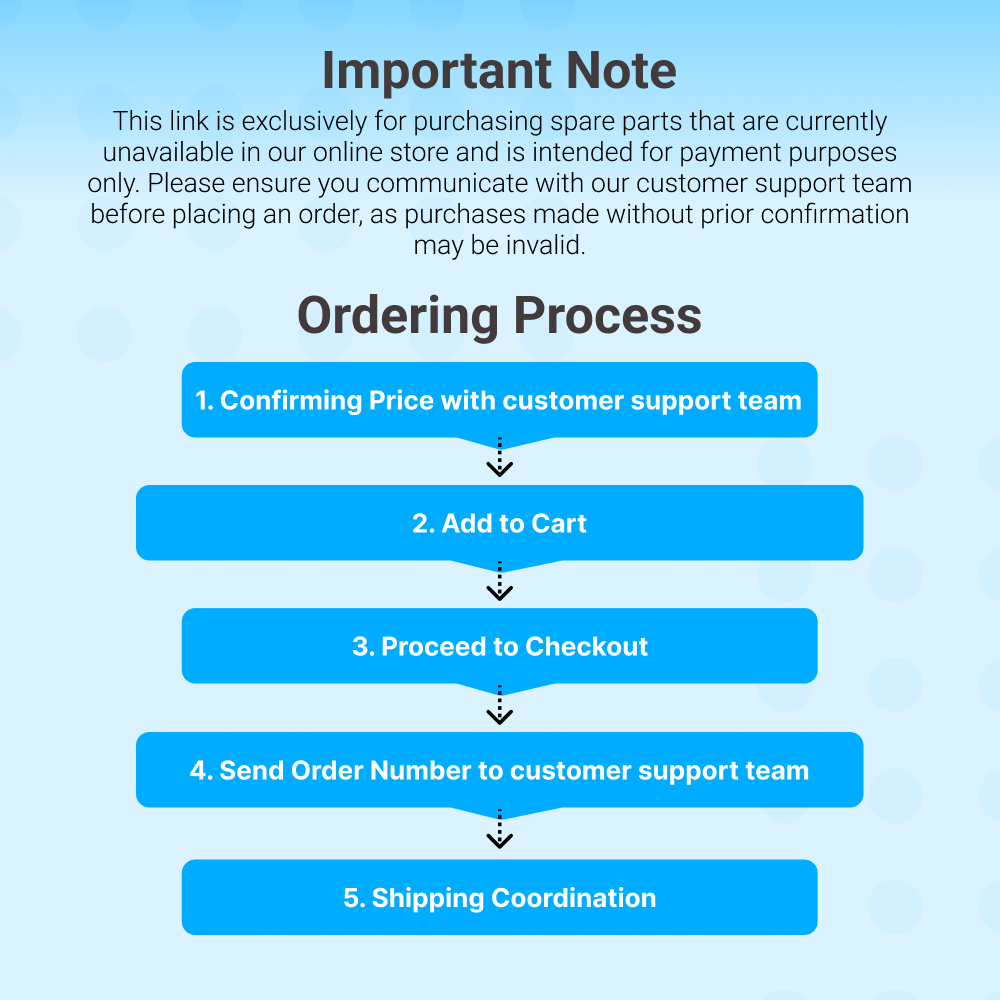 Important Note: This link is exclusively for purchasing spare parts that are currently unavailable in our online store and is intended for payment purposes only. Please ensure you communicate with our customer support team before placing an order, as purchases made without prior confirmation may be invalid.